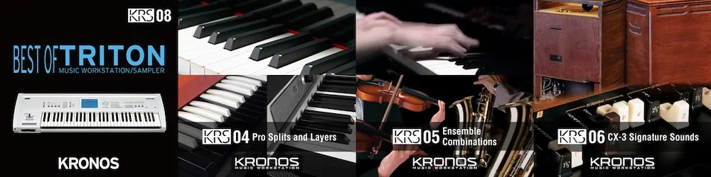 - KRONOS 聲音庫可讓您尋找主機中未包含的優秀聲音和流派,並根據您的喜好調整您的 KRONOS。您可以按照樂器類別、發行年份、開發商名稱搜尋您喜歡的曲目。有兩種類型的庫:包含 PCM 的 EXs 庫和僅包含程式資料的 KRS 庫;每個庫還包括演示聲音和影片,因此您可以找到您正在尋找的聲音。